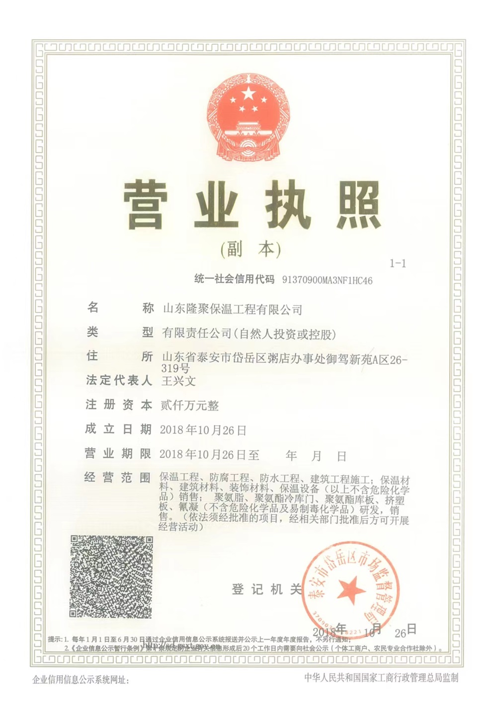山东隆兴集团公司成立于1999年,是一家以专业保温防水工程施工,聚氨酯产品为主,集科研、开发生产、施工为一体的股份制生产企业,下属有隆兴保温材料有限公司、隆聚保温工程有限公司以及聚顺节能科技有限公司。 我公司从事聚氨酯产品的开发研究和应用,聚氨酯技术咨询,聚氨酯进口发泡设备销售及技术咨询;承接防水,防腐,保温,冷库制冷安装等聚氨酯现场施工和化工助剂产品贸易。产品应用于石油管道、城市集中供热、商业冷库、民用建筑、体育场馆、家具、家电、航海、航空航天等行业。 公司的聚氨酯系列产品包括:硬泡聚氨酯组合材料(喷涂型、浇筑型、...